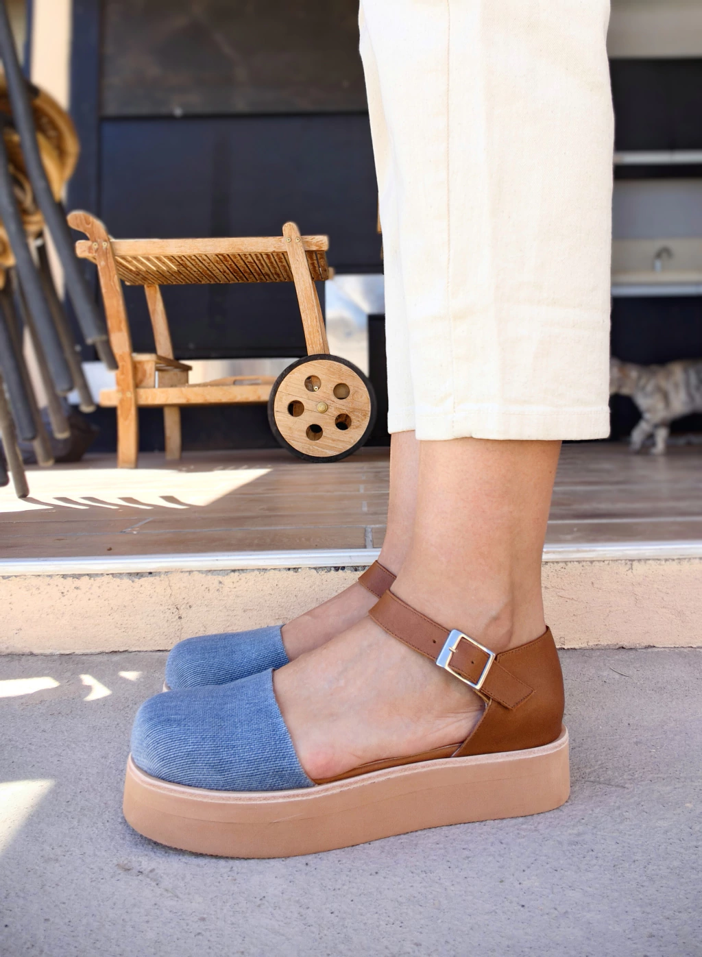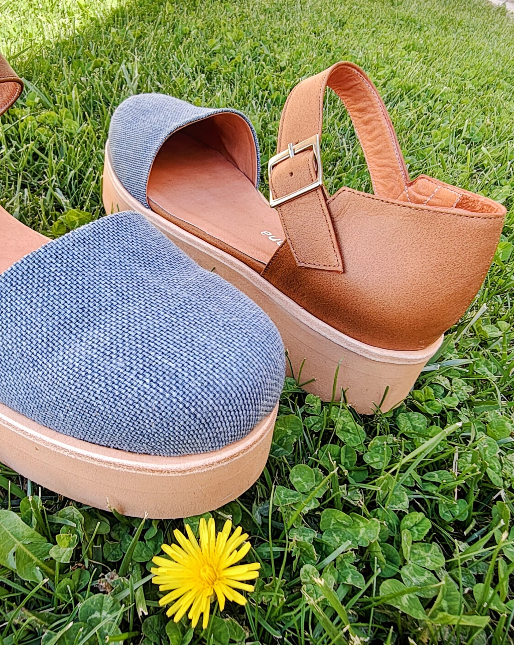 Sandalia con plataforma de goma EVA, liviana y cómoda para el uso diario.
